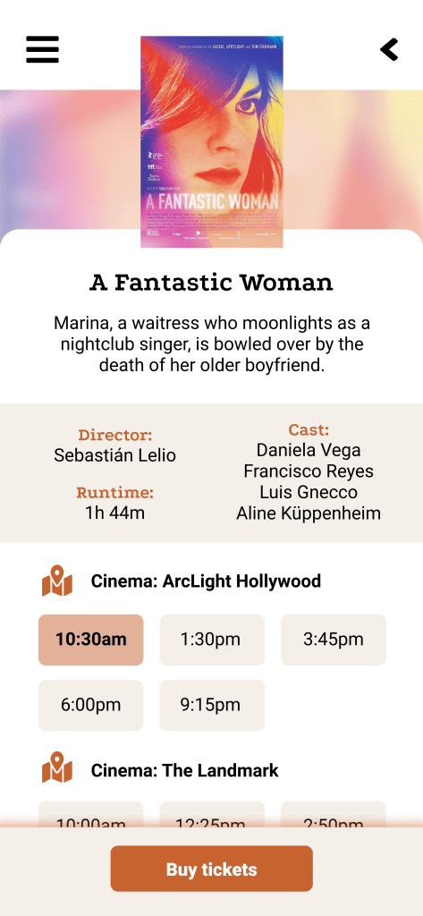 - Clean and non-distracting look. Going to the cinema is a way we relax and spend time with the friends. An app hat helps chose them shouldn’t be distracting.