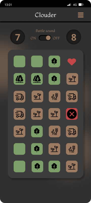 I chose to use icons in the game because they represent real struggles wild population faces. However, this ran the risk of being confusing to the users. To make easier distinction between save and unsafe I decided to use color: green to indicate a save forest, brown that I use in many places in app to show dangerous human area and red for target and poacher.