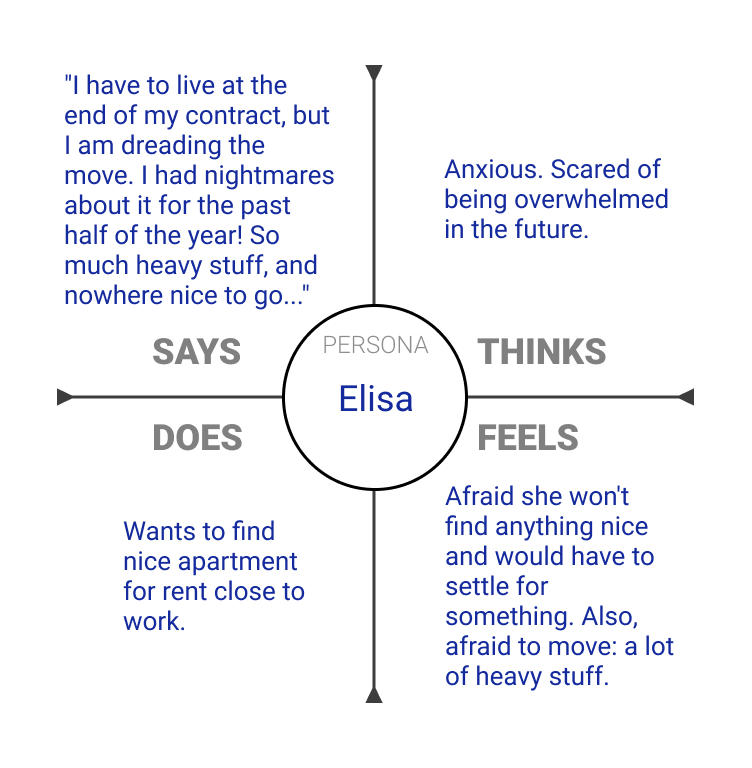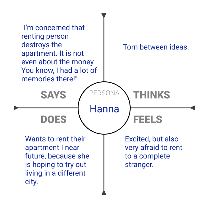 I created two personas: one renting, another renter. I find that documenting personas etc. are super useful when one came back to the project to realize what kind of approaches have already been explored.