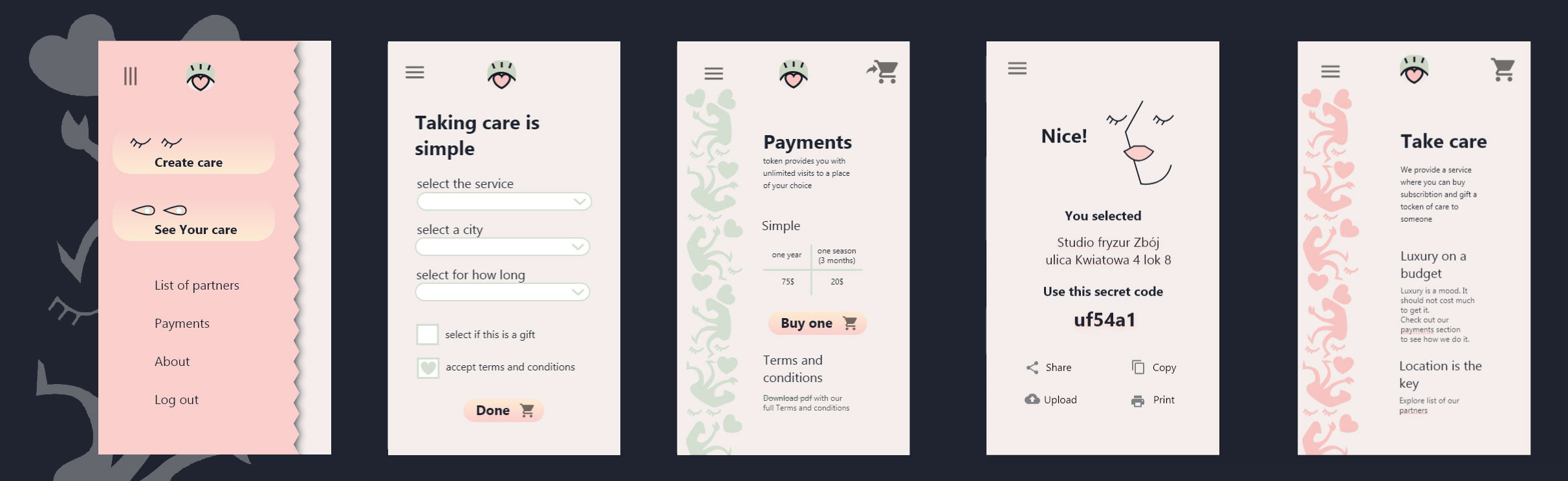 UI design for an app allowing people to gift a subscription for hairdresser or beauty salon.